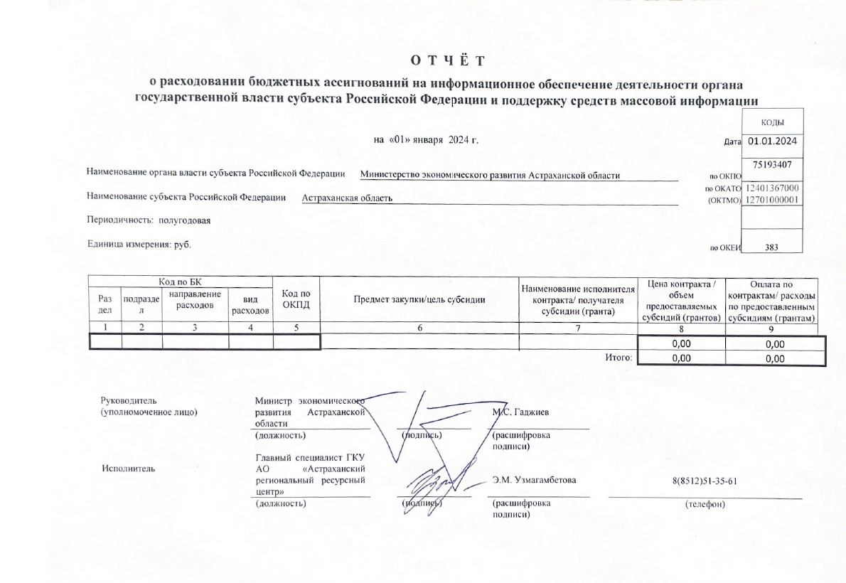 Отчёт о расходовании бюджетных ассигнований на информационное обеспечение деятельности министерства