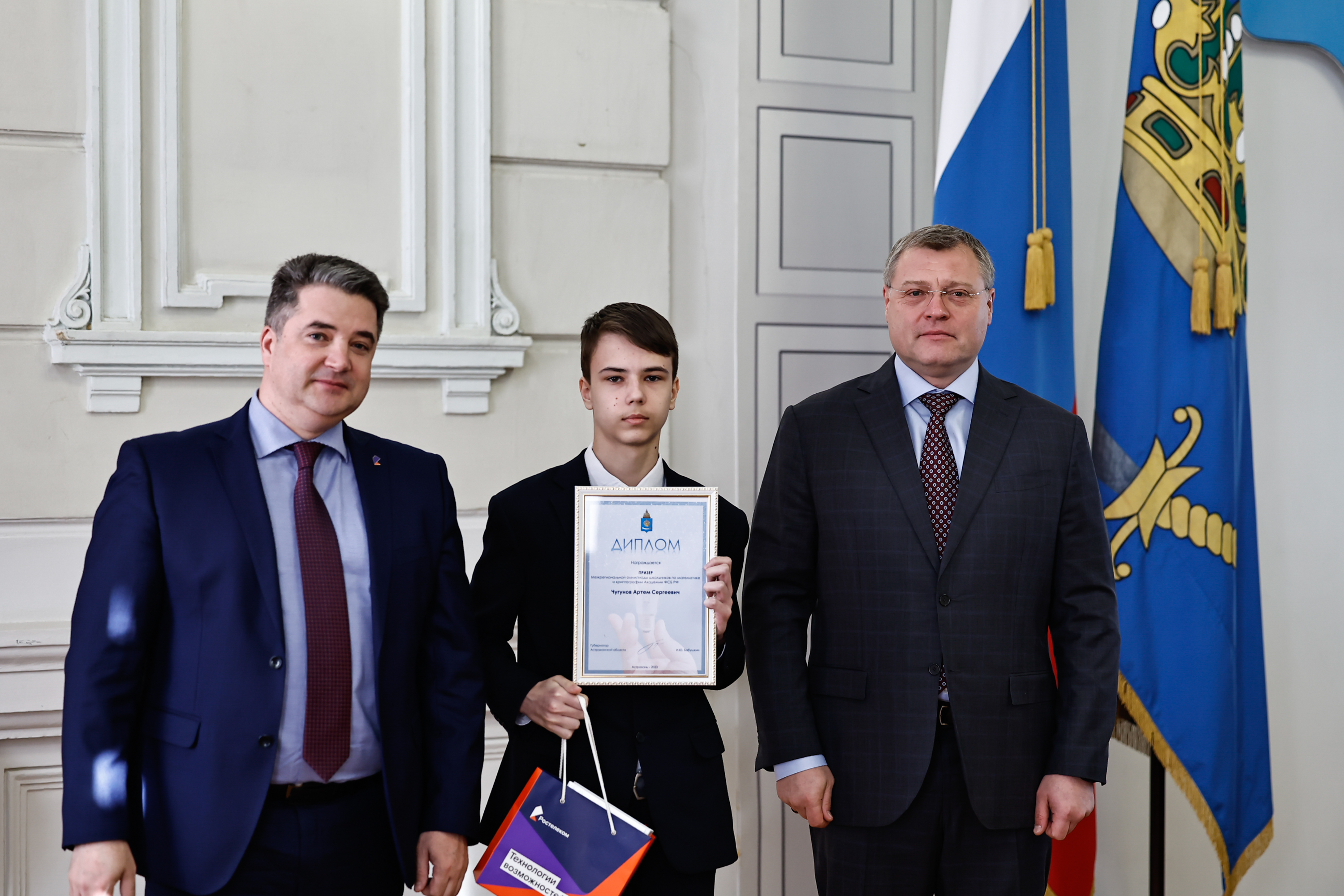Сегодня на торжественном мероприятии губернатор Астраханской области Игорь Бабушкин вручил награды молодым исследователям – школьникам, ставшим победителями всероссийских конкурсов и олимпиад. В мероприятии и церемонии награждения также участвовали заместитель председателя регионального Правительства Казбек Хадиков и министр экономического развития региона Мансур Гаджиев.